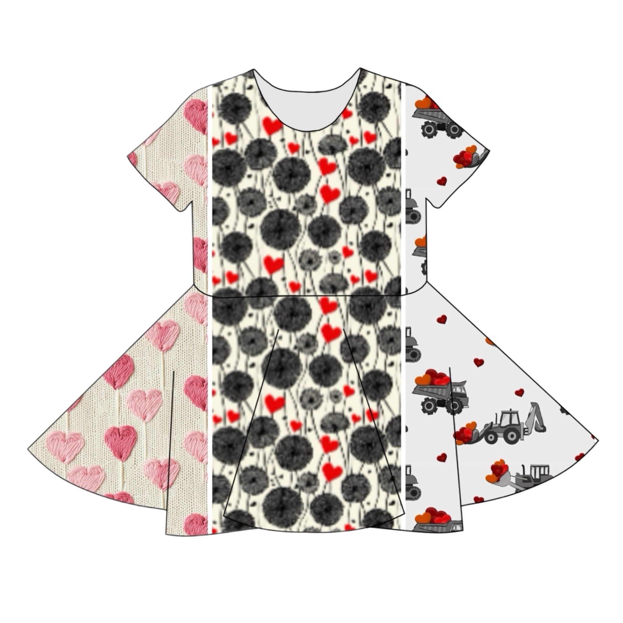 Peplum and Twirl Dresses are made with stretchy knit fabric, available in multiple sleeve lengths. Peplums are shorter than Twirl dresses.